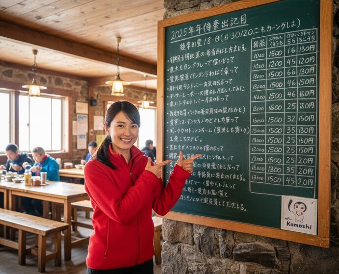 特にオリジナルのカモシカキャラクター「カモシー」をあしらったメニューやグッズ展開は、山小屋という場所に親しみやすさを与えてくれています。こうしたホスピタリティの高さが、リピーターを惹きつけてやまない理由かなと思います。