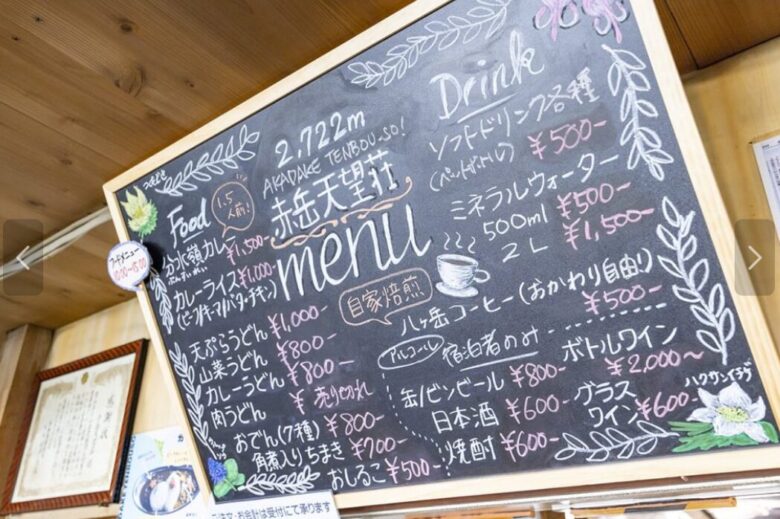 また、翌日の行動時間が長い場合は、前日までに予約しておくことで「お弁当(1,000円)」を用意してもらうことも可能です。稜線でのランチ難民にならないためにも、活用をおすすめします。