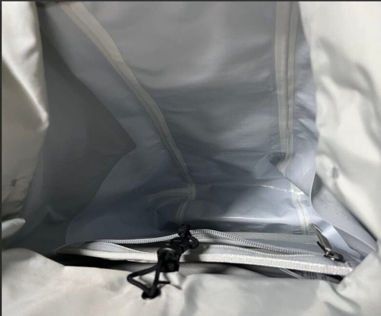 一般的な防水バッグは、縫い目から水が侵入するのを防ぐために「レインカバー」を必要としますが、グランヴィル25は違います。バッグ内部のすべての縫い目には、アークテリクスが誇る精密なシームテープ加工が施されており、針穴からの浸水を100%カットします。