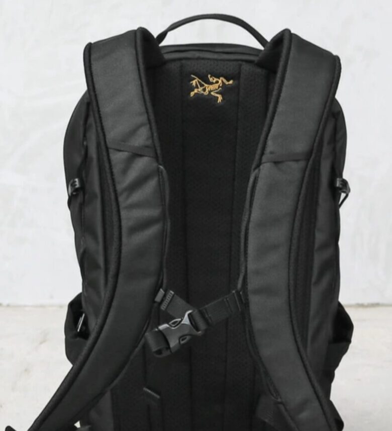 デザイン面でも大きな変化がありました。フロントパネルに配置されていた「ARC’TERYX」というテキストロゴが完全に排除され、始祖鳥の刺繍ロゴのみになった点です。これにより、ブランドを主張しすぎない大人の落ち着きが生まれ、スーツやオフィスカジュアルとの相性がさらに向上しました。