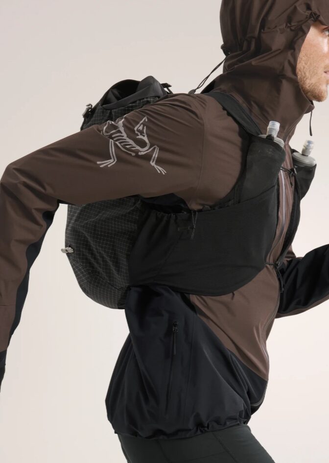 襟元には救助用リフレクターのRECCO®が埋め込まれており、万が一の遭難時に捜索隊からの発見をサポートしてくれます。2025年モデルでは、肩や腕に配置されたアークテリクスのロゴが大型のリフレクティブ仕様になっており、ナイトランでの視認性も格段に向上しています。