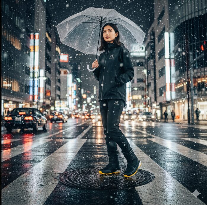 前述の通り、GORE-TEXによる完全防水の機能は、突然の雨や雪で足元が濡れる不快感から完全に解放してくれます。さらに、Vibramソールの優れたグリップ力は、濡れたマンホールや駅の階段、横断歩道の白線といった、都市に潜む滑りやすい場所での転倒リスクを大幅に軽減します。