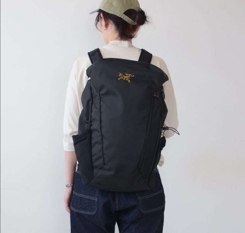 街中で見かける20Lクラスのリュックと比べると一回り大きく見えますが、サイドのコンプレッションストラップを絞ることで、荷物が少ない時でも厚みを抑えてスタイリッシュに見せることができます。これがアークテリクスのセンスを感じるところです。