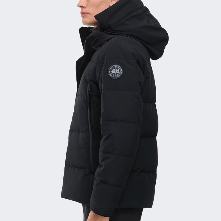 ワッペンがモノトーンになるだけで、アウター全体の印象がぐっと引き締まり、よりラグジュアリーな雰囲気が増すように感じます。まさに「大人のためのカナダグース」といった佇まいで、知る人ぞ知る通な選択という満足感も得られるのが、ブラックレーベルが選ばれる理由かなと思います。