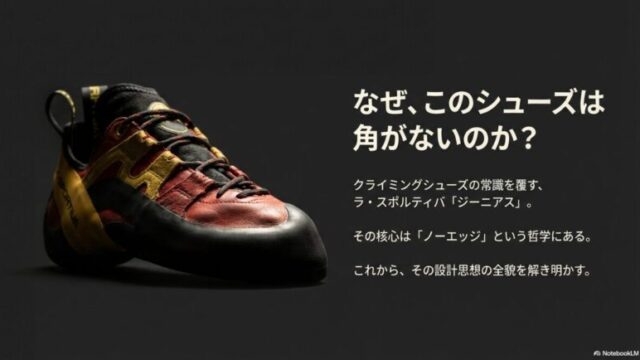 スポルティバのジーニアスをレビューした結果、ノーエッジがもたらす究極の足裏感覚と岩を掴むようなスメッジング性能が判明しました 。サイズ感やリソールの真実も網羅した本スポルティバのジーニアスをレビューした記事で、マンダラ等との比較を通じ、自分に最適な一足を見つけましょう 。