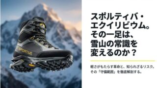 登山靴 スポルティバのエクイリビウムは雪山で使える?残雪期の限界と評判 スポルティバのエクイリビウムは雪山で使える時期と限界について、実際の使用感を交えて徹底レビューします。残雪期は快適ですが厳冬期は寒い?サイズ感やアイゼン不適合リスクも解説。スポルティバのエクイリビウムを雪山用に買う前に知るべき寿命やコストの話まで、失敗しない選び方を伝授します。登山靴