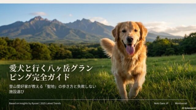 八ヶ岳のグランピングで犬との旅を最高にする情報を登山好きの筆者が徹底解説。大型犬も可な広大ドッグラン付き施設や、安い穴場プランの選び方、冬の積雪対策まで網羅しました。八ヶ岳のグランピングで犬との絆を深める最高の休日を計画したい方は必見。愛犬が喜ぶ理想の施設をぜひ見つけましょう。