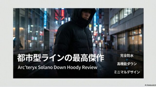登山ウェアソラノダウンフーディのレビュー!暖かさやサイズ感を徹底解説 アークテリクスの新作、ソラノダウンフーディのレビューでは、防水透湿性に優れたゴアテックス素材と750フィルパワーの保温性を徹底解説します。都会的なデザインが魅力なソラノダウンフーディのレビューを通して、サイズ選びや洗濯方法、対応温度帯を把握し、冬の街歩きを快適にする一着を見つけましょう。登山ウェア