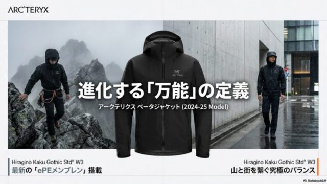 登山ウェアアークテリクスのベータSLをレビュー!登山から街着まで徹底解説 アークテリクスのベータSLをレビューする本記事では、2024年に刷新された新素材ePEの性能やサイズ感を徹底解説します。アークテリクスのベータSLのレビューを通じて、登山での実力や街着としての汎用性、入手困難な抽選販売の現状まで網羅しました。購入前に知りたい情報を凝縮してお届けします。登山ウェア