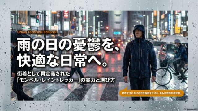 登山ウェアモンベルのレイントレッカーを普段使い!街着の実力とサイズ感・選び方 モンベルのレイントレッカーを普段使いしたい方向けに、最新モデルの進化やサイズ感、蒸れにくさを徹底解説します。レイントレッカーを普段使いする際のメリットである耐久性や自転車通勤での利便性、ストームクルーザーとの違いなど、日常の不快を解消するヒントが満載の記事です。登山ウェア