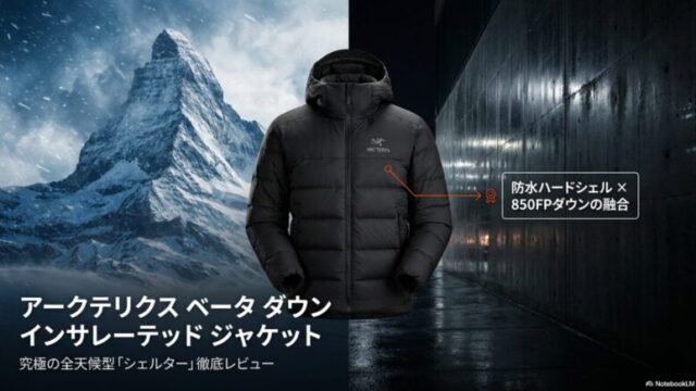 登山ウェアベータダウンジャケットのレビュー!サイズ感や登山・街着での評価を徹底解説 アークテリクスの最高峰モデルであるベータダウンジャケットのレビューを徹底解説します。850フィルパワーの圧倒的な暖かさや最新ゴアテックスの防水性能、失敗しないサイズ選びのコツまで網羅しました。ベータダウンジャケットのレビューを参考に、真冬の登山から街着まで一生モノの相棒を手に入れましょう。登山ウェア