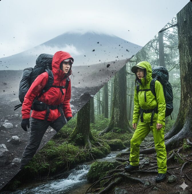 屋久島は「1ヶ月に35日雨が降る」と言われるほどの多雨地帯です。雨の中を10時間歩き続けるのは、想像以上に体力を奪います。ここで重要なのがレインウェアの質です。