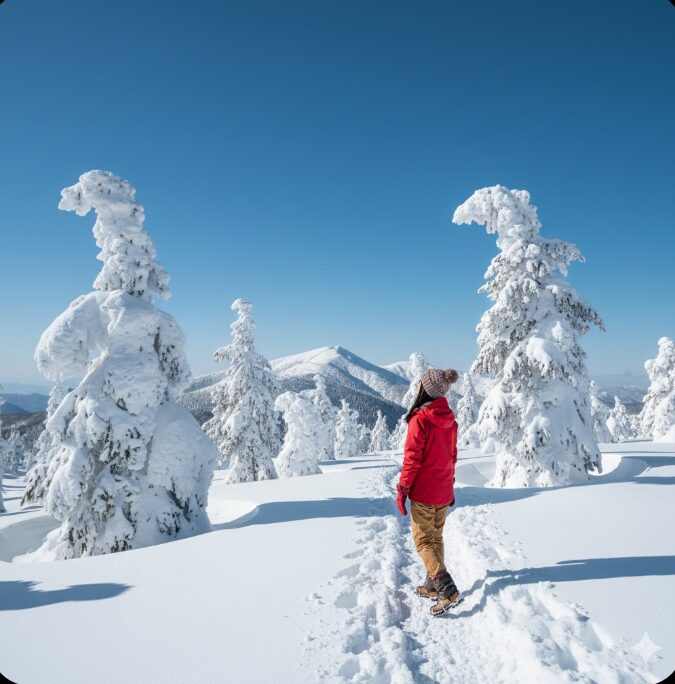冬の北八ヶ岳は、青空と白い雪、そして樹氷(スノーモンスター)が織りなす絶景が楽しめますが、気象条件は非常に過酷です。標高2,200m超の世界は、風速1メートルにつき体感温度が1度下がると言われ、気温マイナス15度、風速15メートルといった状況も珍しくありません。