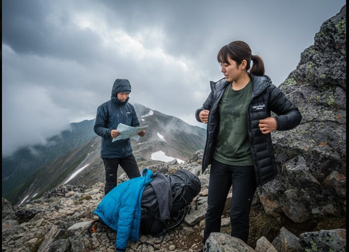 もし登山中に汗で濡れたダウンを着続けていると、休憩時や風に吹かれた際に気化熱で急激に体温が奪われ、最悪の場合「低体温症」に陥る危険があります。夏山であっても、標高の高い場所や天候の急変で気温は大きく下がるため、濡れたウェアによる体温低下は絶対に避けなければなりません。