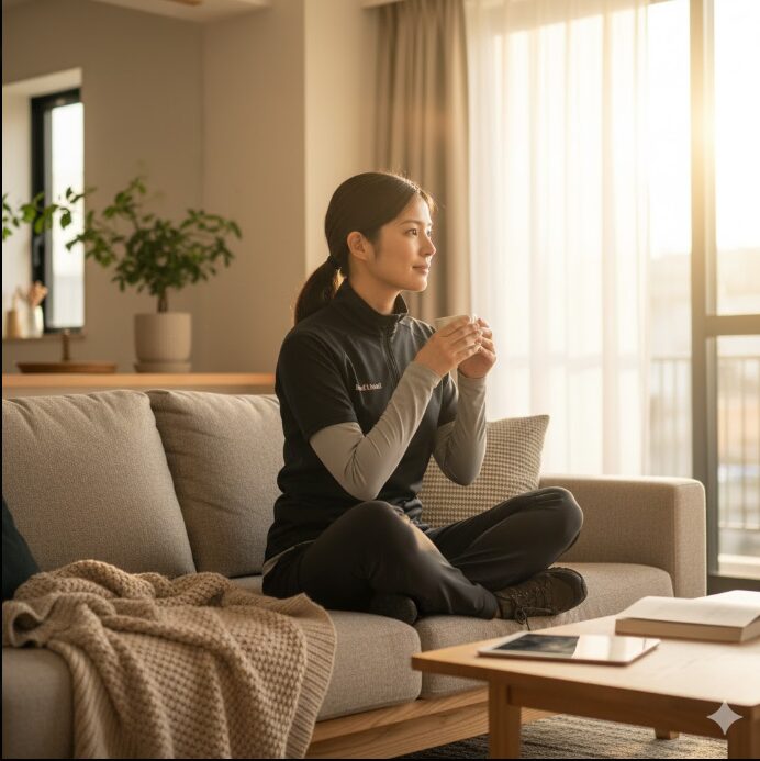 特に、家で過ごす時間が多い方にとって、マウンテンジャージは最高の部屋着、そしてリモートワークウェアになり得るポテンシャルを秘めています。その理由は、締め付け感のない着心地にあります。体を優しく包み込むストレッチ素材は、長時間椅子に座っていても、ソファでくつろいでいても、体の動きを一切妨げません。