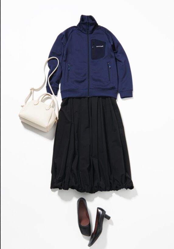 また、シンプルなワンピースの上からカーディガン感覚で羽織るのもおすすめです。機能的なジャケットが、コーディネート全体の「はずし」として機能し、よりおしゃれな奥行きを与えてくれます。