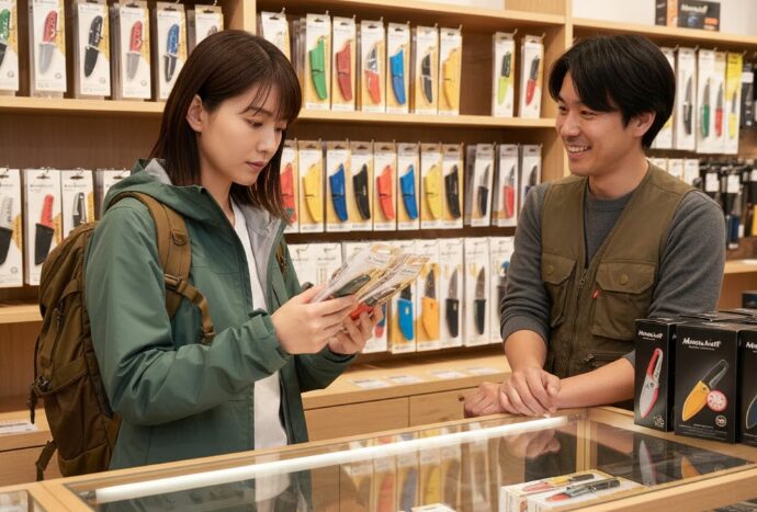 本物を見極めるポイントとしては、シースの成形の精度(カチッと収まるクリック感)や、ハンドルのラバーの質感が挙げられますが、一番は「信頼できる正規販売店」を選ぶことに尽きます。偽物は鋼材の質が悪く、使用中に刃が折れるなどの重大な事故に繋がりかねないため、安さだけで選ばないようにしたいですね。