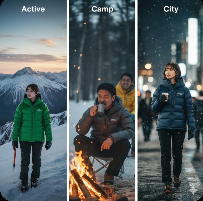 | 主な用途 | 街着、ライトキャンプ (耐久性重視) | スキー、登山 (透湿性・軽量性重視) |