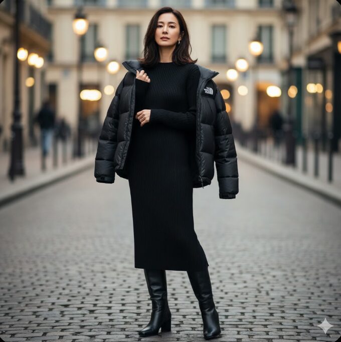 - 必須テクニック: → 「裾のドローコードを絞って」シルエットにメリハリを必ず作ってください 。