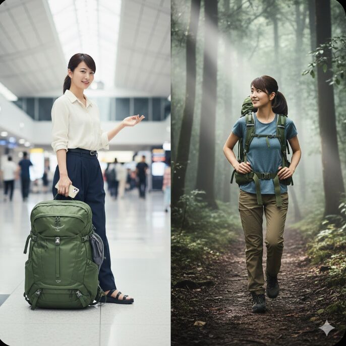 最大の決定打は、「旅先でどのくらい歩くか」です。ファーポイント40は、内部に軽量なワイヤーフレームが入っており、さらに背面長の微調整が可能です。そのため、バックパックを背負ったまま数時間移動したり、時には軽いハイキングも楽しみたいという方にはファーポイントが圧倒的に向いています。