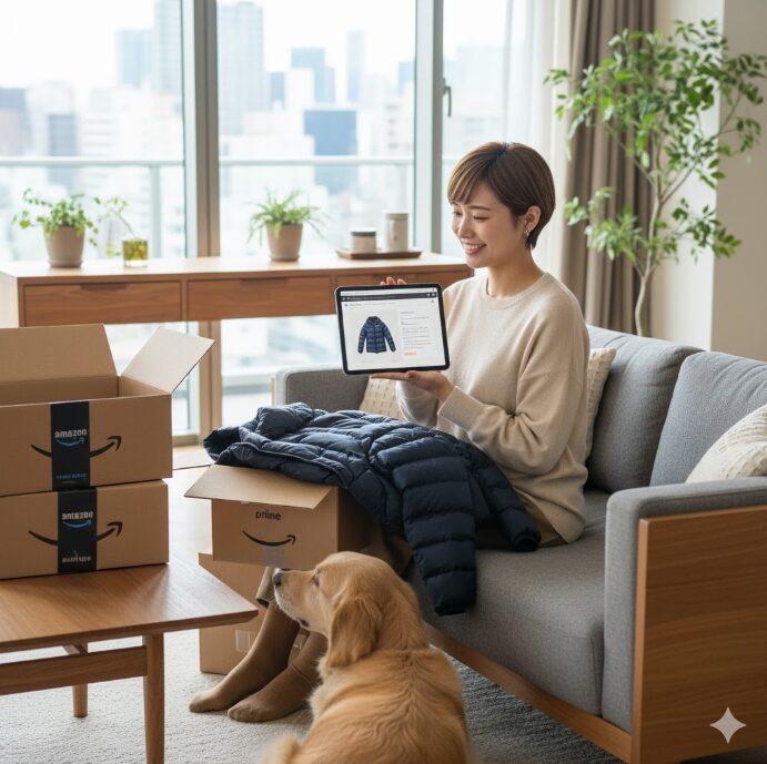 また、Amazonプライム会員であれば、対象商品のお急ぎ便やお届け日時指定便が無料で利用できるため、欲しいと思った商品をすぐに手元に届けてもらえるのも大きな魅力です。試着後にサイズが合わなかった場合でも、Amazonが発送する商品であれば返品・交換がスムーズに行える点も安心材料と言えるでしょう。