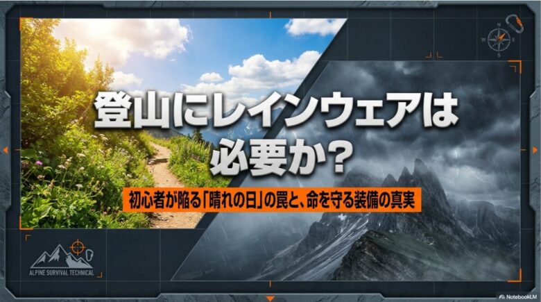 ここまで読んでくださった皆さまなら、もうお分かりですよね。「登山にレインウェアはいらない」という問いに対する最終的な結論は、山岳という動的なリスク環境において、その判断は「自己の生存権を放棄することに等しい」ということです。