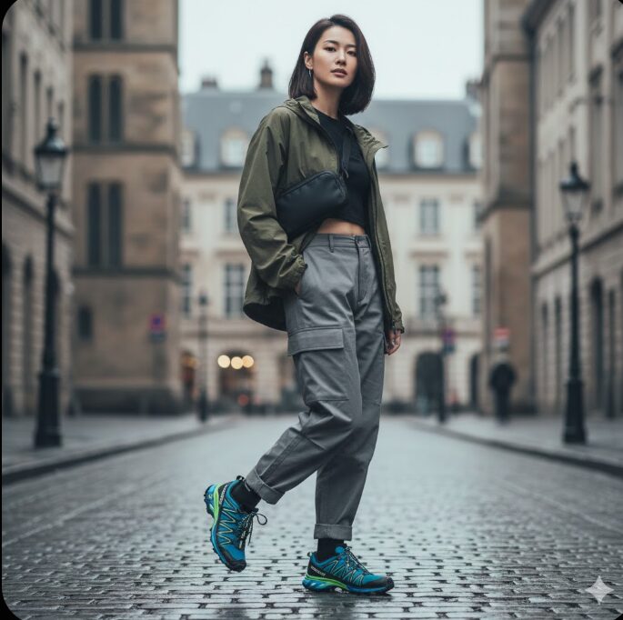 機能的な注意点はありますが、それを補って余りあるのがスピードクロス5のルックスです。最近では「テック系」や「ゴープコア」といったファッションの流行もあり、このシューズを街履きアイテムとして取り入れる人が急増しています。