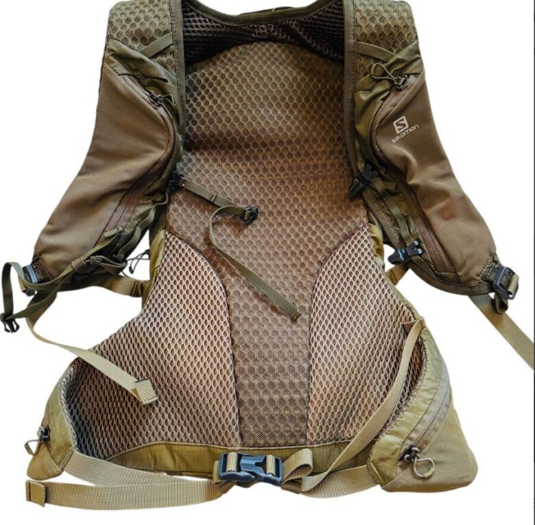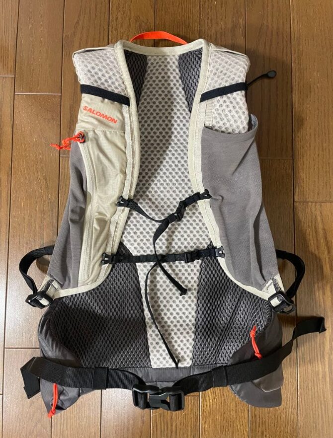 ただし、弱点もあります。あくまで「ハイキングパックの派生」であるため、ポールホルダー(ストックを取り付けるゴム)は簡易的なものです。走るとポールがブラブラと揺れて背中に当たることがあります。本格的に走る場合は、別途ポールベルトを用意するか、バンジーコードを自分でカスタムして固定力を高める工夫が必要でしょう。