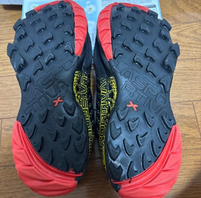 トレイルランニングシューズは決して安い買い物ではないので、消耗品とはいえ、少しでも長く使いたいのが本音ですよね。「スポルティバのソールは減りやすい」という噂を聞いたことがある方もいるかもしれませんが、カラカルに関して言えば、耐久性はかなり優秀な部類に入ります。