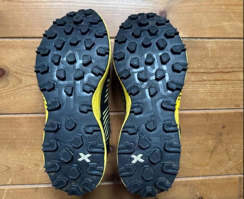周りのユーザーや海外のレビューを参照しても(約640〜800km)ほど使用した段階でも、まだ実用的なラグの高さとグリップ力が残っているという報告が多く見られます。ミッドソールのEVAフォームについても、初期のコシが強いため、長期間使用しても「ヘタリ」によるクッション性の低下を感じにくい傾向があります。