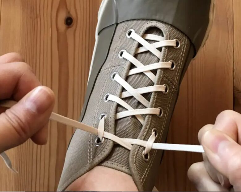 シューズの履き口付近にある、一番上の余った穴を覚えていますか?あの穴はただの飾りではなく、この結び方のためにあるんです。