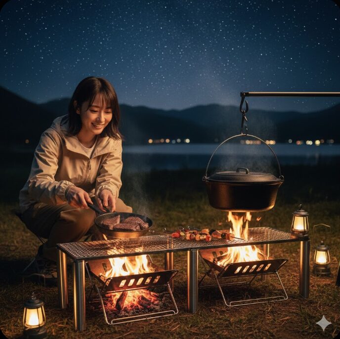 焚き火の炎は、ただ眺めているだけでも癒されますが、その炎を自在に操って美味しい料理を作ることができれば、キャンプの夜はもっと素晴らしいものになります。ぜひ、あなたのスタイルに最適なユニフレームのファイアグリルと五徳のセットアップを完成させて、次のキャンプに出かけてみてください。