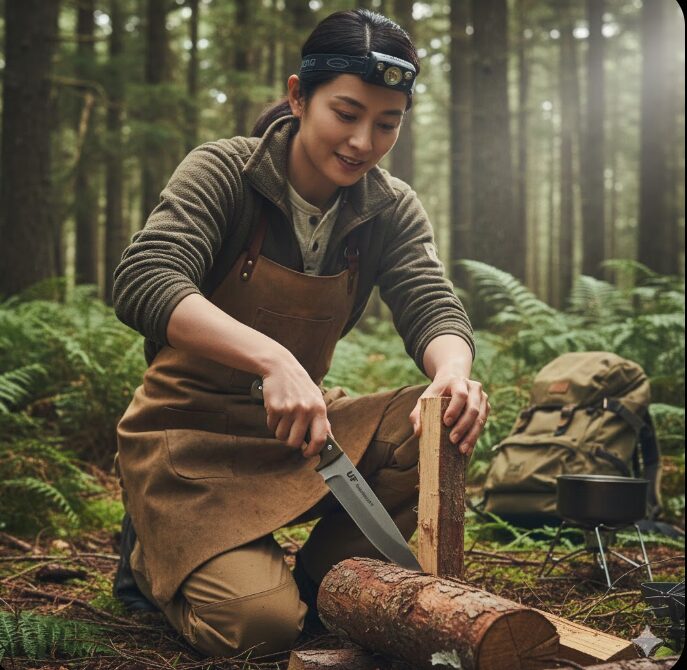 調理用包丁の影に隠れがちですが、焚き火愛好家から絶大な支持を得ているのがUFブッシュクラフトナイフです。こちらは「切る」だけでなく「割る・削る」といったハードな作業を想定して設計されています。