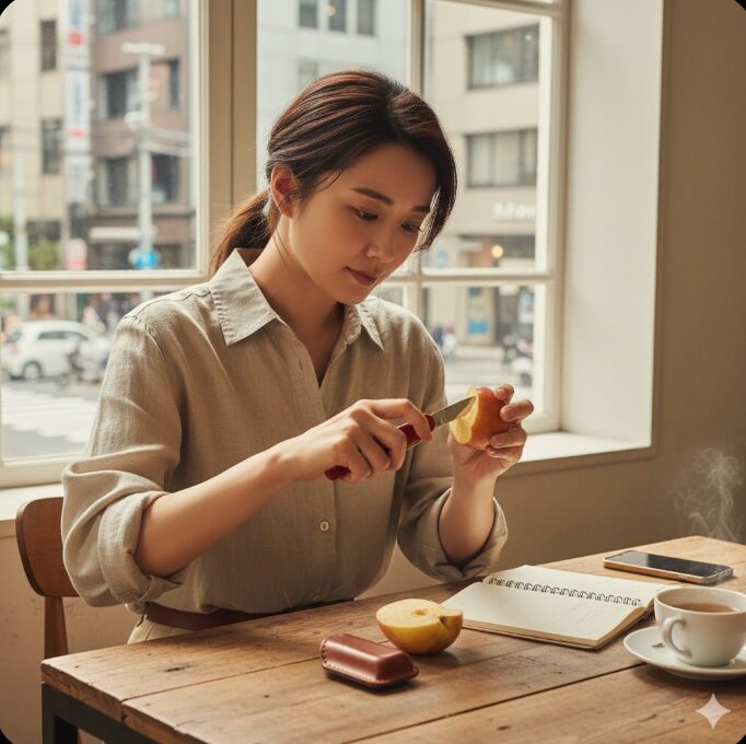 例えば、リンゴやチーズなどの食材をカットする際、厚い刃だと「割り裂く」ような感覚になりますが、スーベニアは「滑らかに断ち切る」という感覚に近い使い心地を提供してくれます。